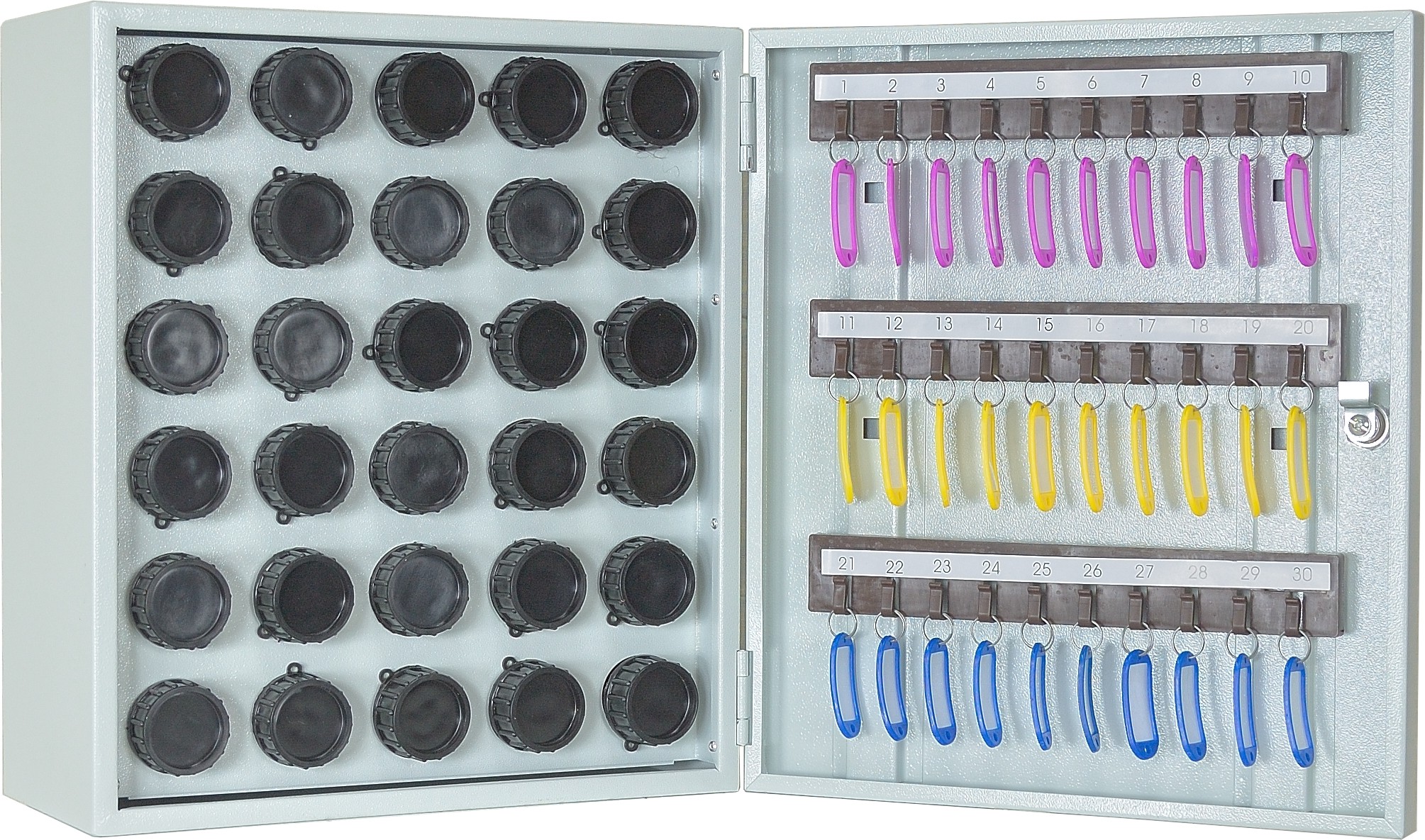 Ключница (пенальница) металлическая настенная КЛ30П, 30 пеналов в комплекте, без брелков.
